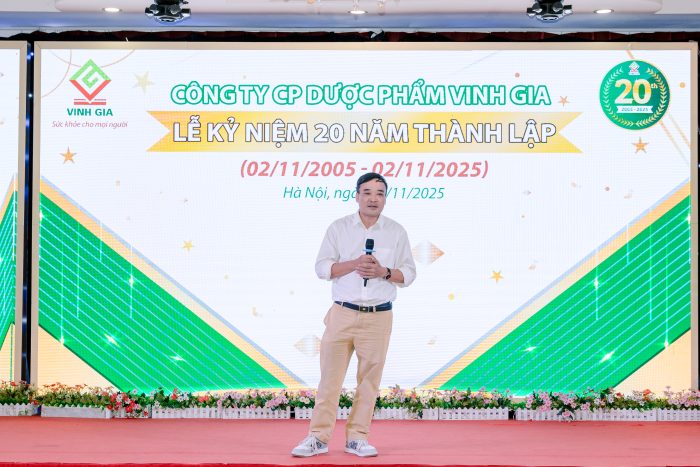 Ngày 01/11/2025, Công ty Cổ phần Dược phẩm Vinh Gia đã long trọng tổ chức Lễ kỷ niệm 20 năm thành lập, đánh dấu chặng đường hai thập kỷ hình thành, phát triển và phụng sự cho sứ mệnh “Sức khỏe cho mọi người” ( 02/11/2005 – 02/11/2025).