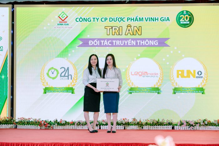 Ngay sau đó, đại diện Ban Lãnh đạo Dược phẩm Vinh Gia đã trao tặng những biểu trưng tri ân đặc biệt đến các chuyên gia, các nhà khoa học, các đối tác sản xuất và đối tác truyền thông – những người đã đồng hành, góp phần xây dựng và lan tỏa giá trị thương hiệu Vinh Gia trong suốt hai thập kỷ qua.