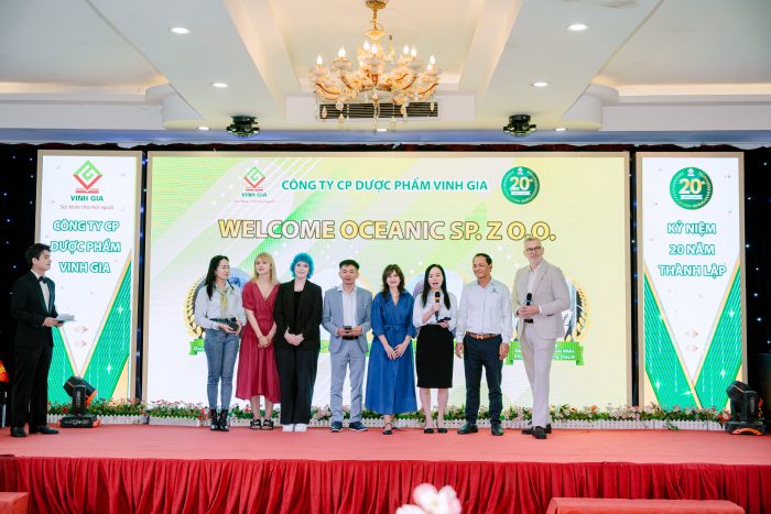 Buổi lễ càng trở nên ý nghĩa với sự hiện diện của Ông Darek – Tổng Giám đốc Nhà máy Oceanic Ba Lan cùng đội nhóm, những người không quản ngại đường xa sang Việt Nam để chung vui cùng Dược phẩm Vinh Gia.